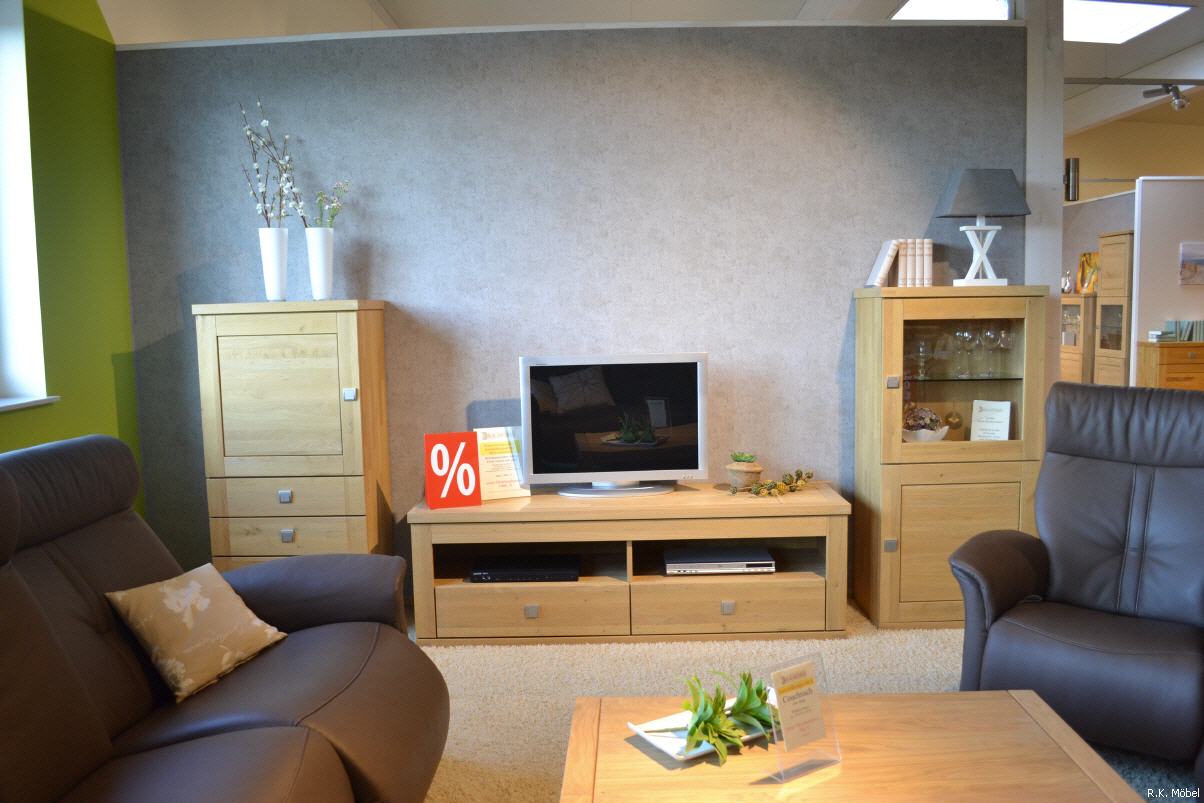 Wohnkombination Arthos in Wildeiche massiv bianco geölt, Stellmaß ca. 345 x 138 x 42/55 cm