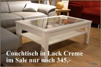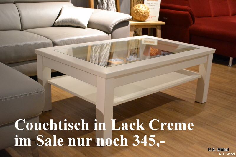 Klassischer Couchtisch in Lack Creme mit Klarglasplatte