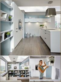 Unsere Einbauküche Touch in weißen supermatten Fronten haben wir mit dem Trendfarbton Aqua aus dem Colour-Concept kombiniert. Durch diesen sanften Kontrast entsteht eine leichtes und frisches Küchenflair.