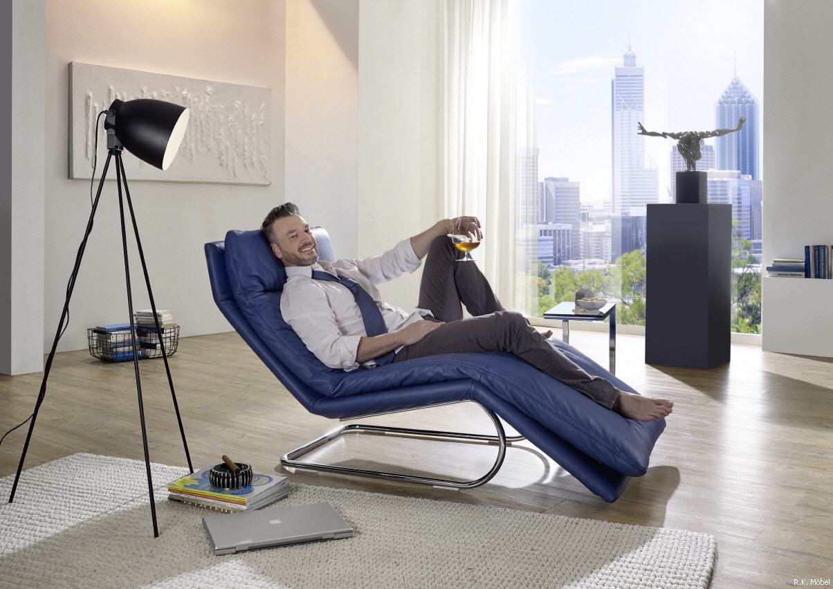 Schaukel-Liege in Premiumleder Z 80- blau mit manueller Relaxfunktion, Breite von 65 cm: ab 1.335,- €