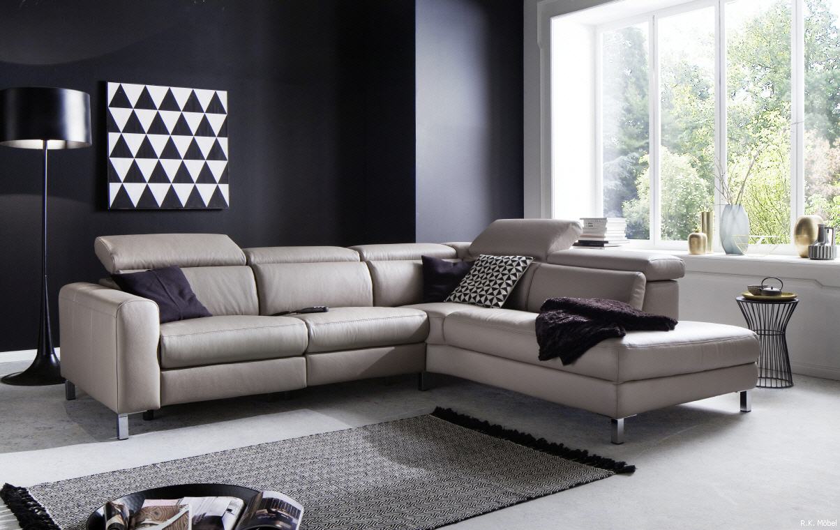 Unsere Polstergarnitur Lazymit modernen Winkelfüßen und komfortabler Kopfstützenverstellung überzeugt durch ein modernes Design und tollen Sitzkomfort! Stellmaß ca. 286 x 240 cm.