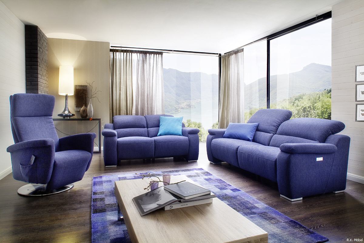 Moderne Polstergarnitur TL 1377 in Stoff navy bietet komfortable Funktionen, wie z.B. die Kopfstützenverstellung.