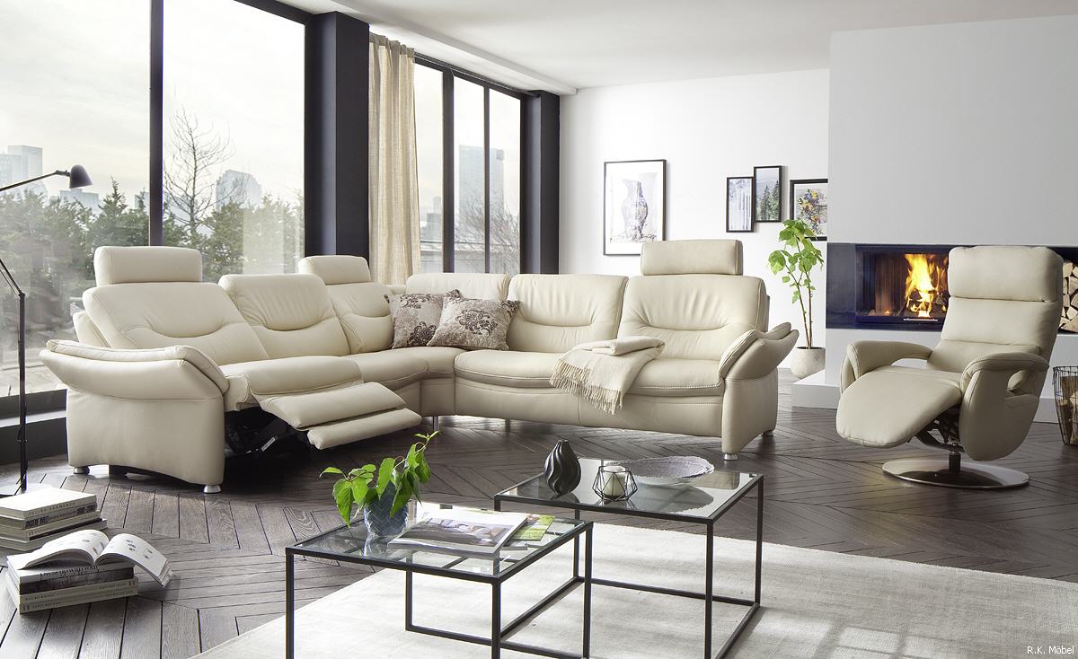 Unsere Polstergarnitur TL 1751 in Premiumleder Credo creme ist durch einen umfangreichen Typenplan und vielfältige Funktionen ein echter Alleskönner. Optional ist dieses Modell z.B. mit einer elektrischen Relaxfunktion erhältlich.
