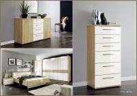 Unser Schlafzimmer Loreno besticht durch hochwertige Echtlackfronten in Weiß. Durch die Absetzung in Eiche Macao NB entsteht eine freundliche und einladende Optik zum Wohlfühlen.